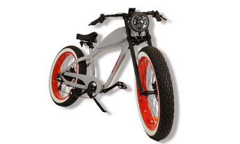 Our super popular Grey Ghost 750 "Boulevarde" series e-bike, but with some sexy Ruby Red slippers and White Walls.